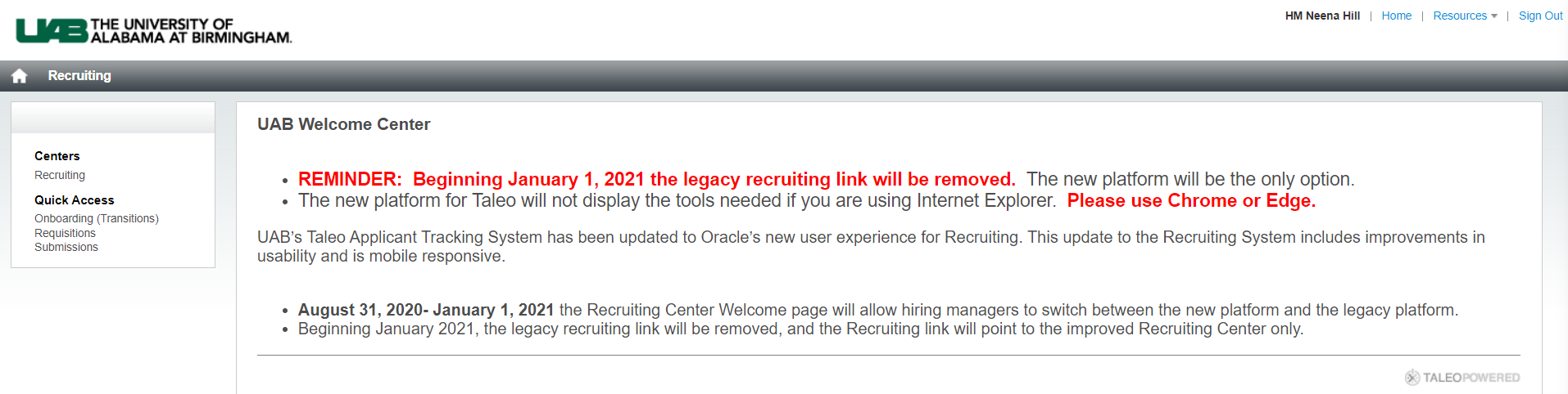 - All Managers link to requisitions or submissions from the Quick Access Menu