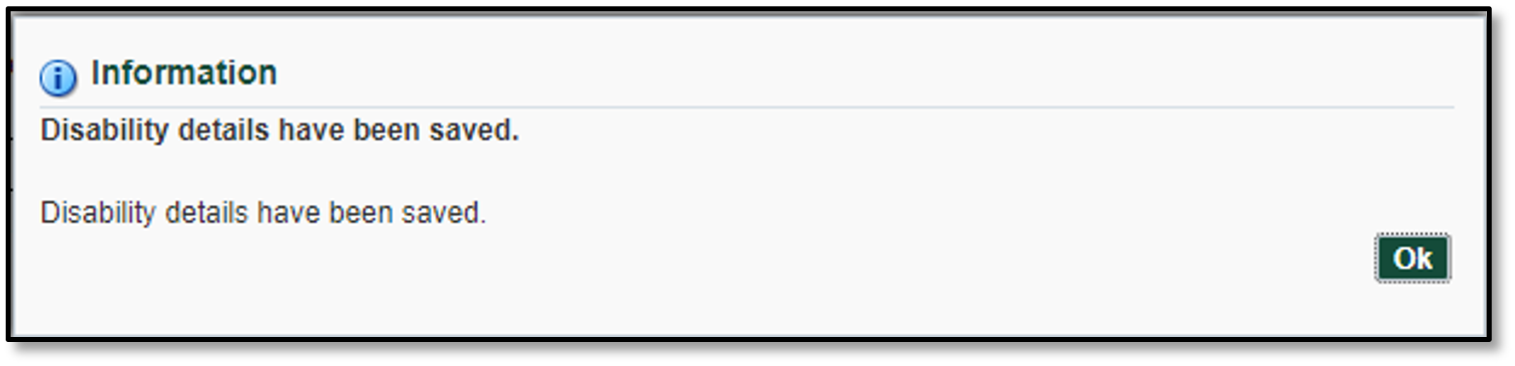 You will receive a confirmation message as shown in the screenshot below. Click Ok to return to the Oracle Home Page.